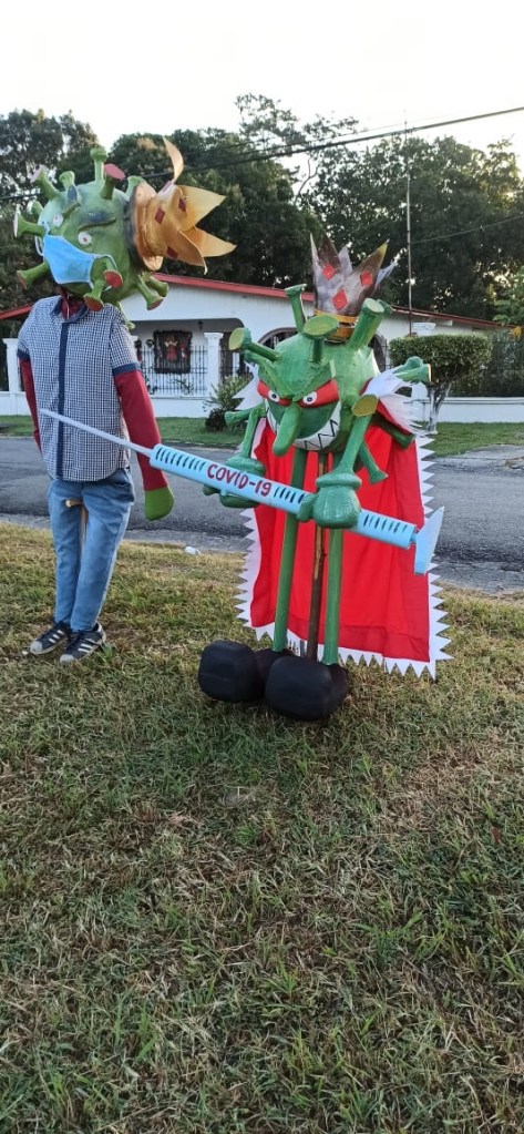 Comenta que los clientes han solicitado una representación de este virus, que ha cobrado la vida de miles de personas, con la ilusión que mediante un acto simbólico de quemar un muñeco con dicha imagen, pueda desaparecer el virus, relata Álvarez.