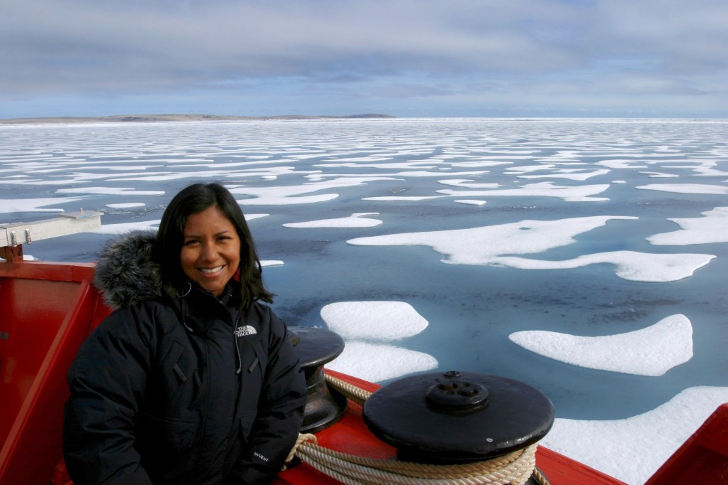 En diciembre de 2007 la Federación Mundial de Periodistas Científicos cuyas siglas en inglés (WFSJ) la seleccionó entre 135 periodistas de ciencia y tecnología de 44 países, como una de las 15 periodistas y la única latinoamericana que abordó el rompehielos canadiense CCGS Amundsen, donde científicos de 15 países efectuaron investigaciones y recolectaron evidencia sobre el impacto del cambio climático en el Ártico. Foto:https://www.ecocienciagt.com/perfil/lucy-calderon