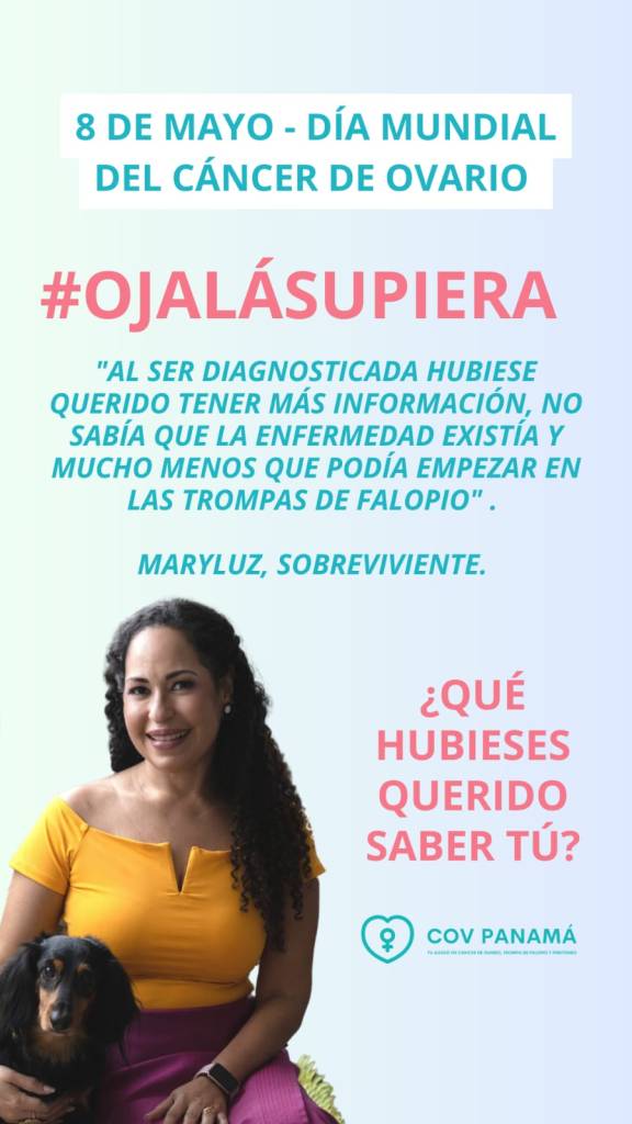 Mientras que Maryluz Chávez, comunicadora, sobreviviente de cáncer de ovario y cofundadora de COV Panamá, nos compartió “Hubiese querido tener algo de información, por años trabaje en campañas de cáncer de mama y jamás supe que el cáncer de ovario existía, no tengo herencia familiar tampoco, por lo que nunca hubo una sospecha de que fuese posible, a pesar de que tenía todos los síntomas. Ahora se que un alto porcentaje de pacientes de cáncer de ovario no tienen familiares con esta enfermedad, no necesariamente es genético”.