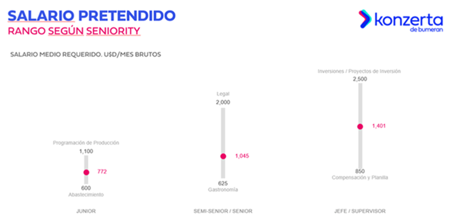 En cuanto al salario pretendido según el seniority del puesto para agosto arrojó los siguientes resultados: